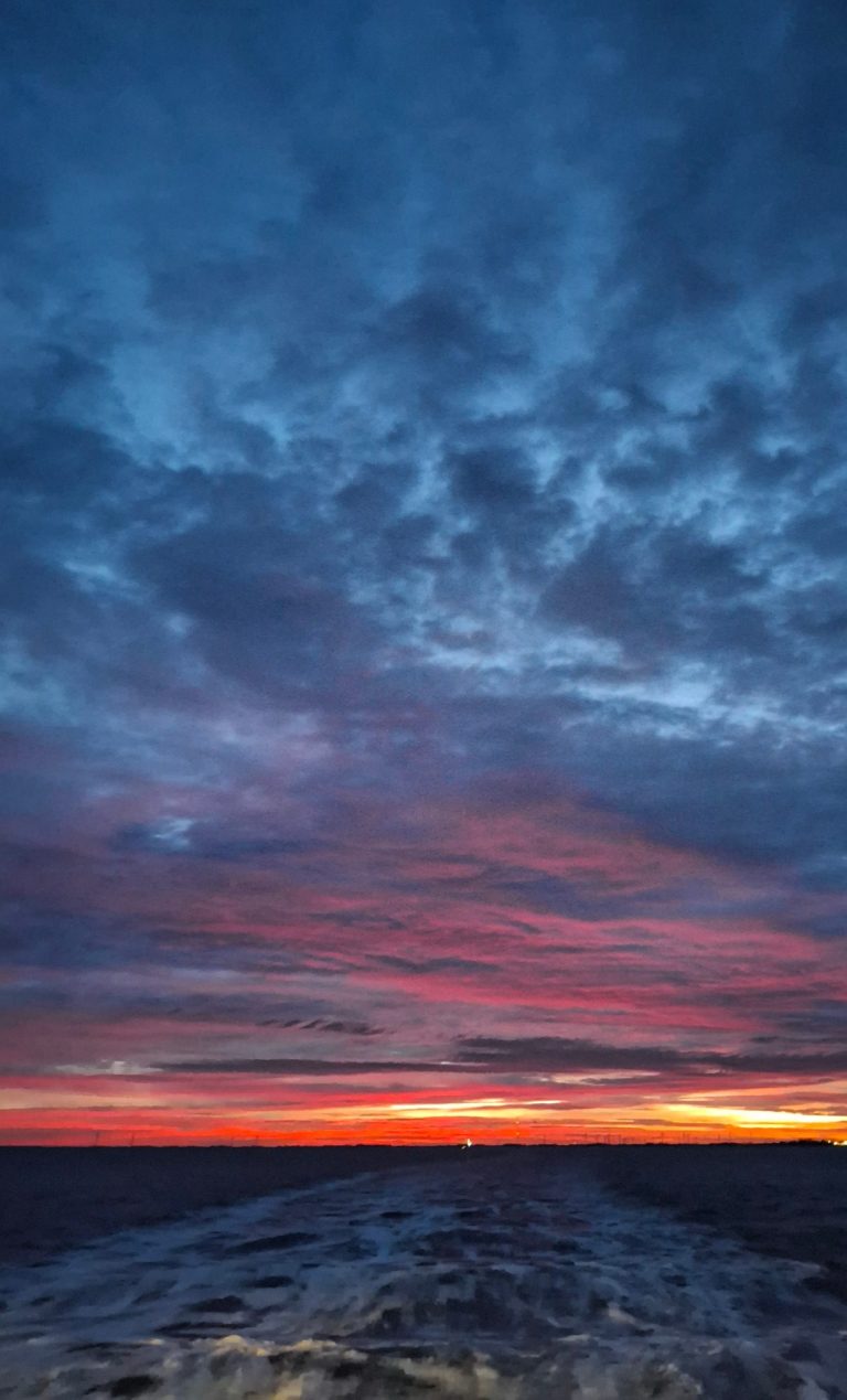Ein unfassbar tolles Licht aus Rosa-, Lila- und Blautönen, verzaubert die Insel, das Meer und das Watt.